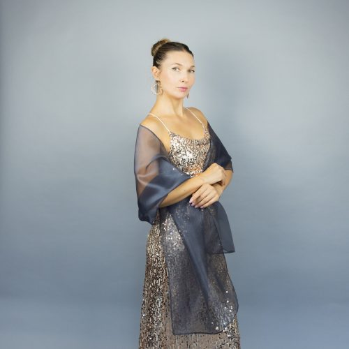 A very elegant charcoal grey organza shawl for your wedding party or evening dress.